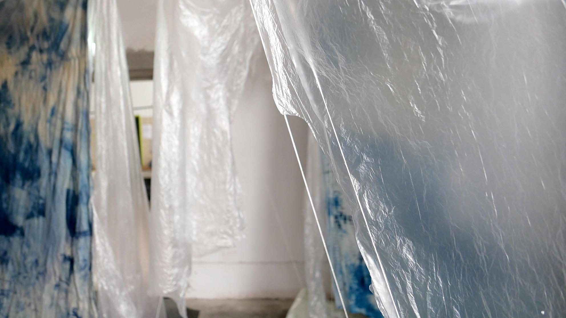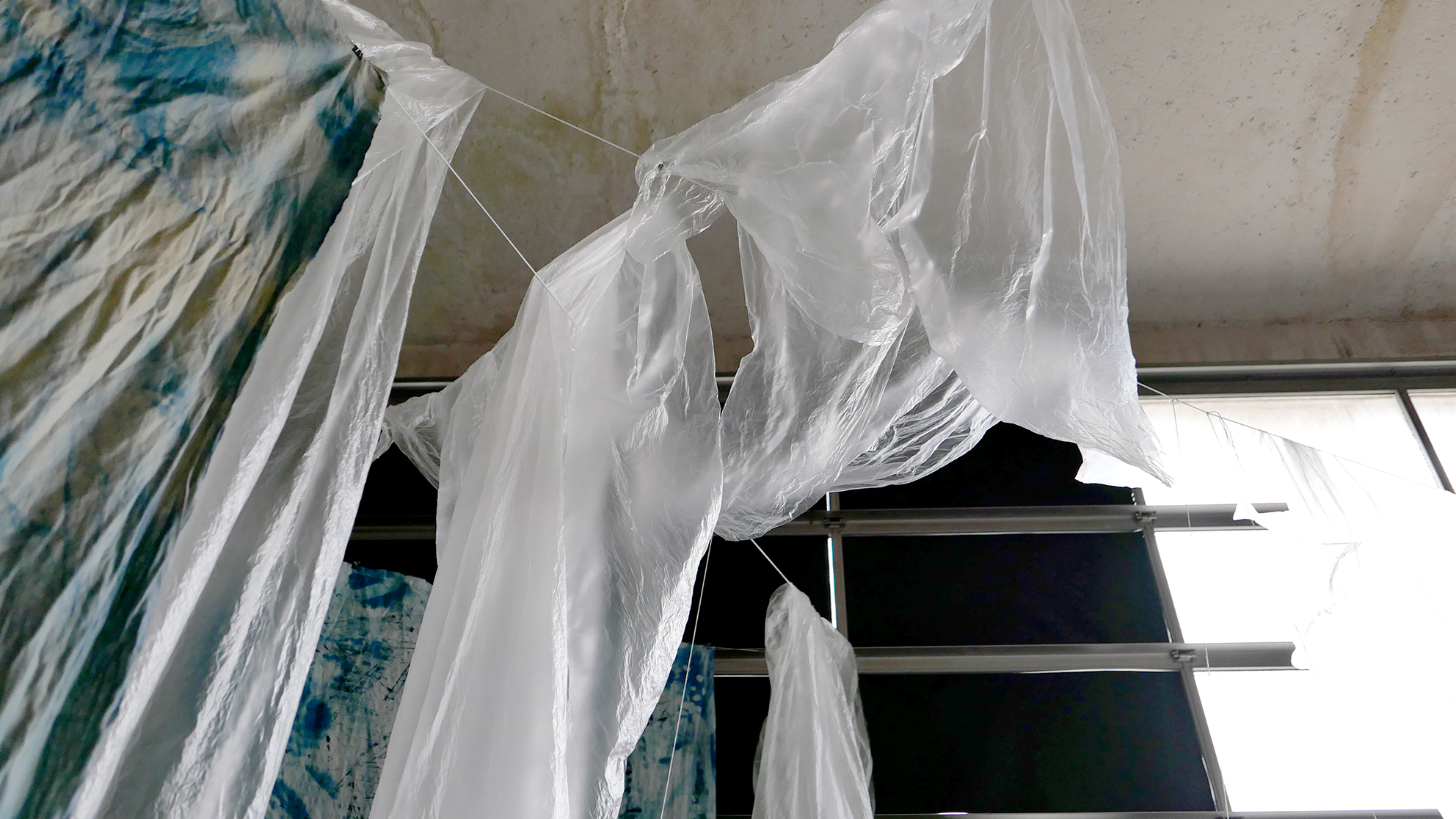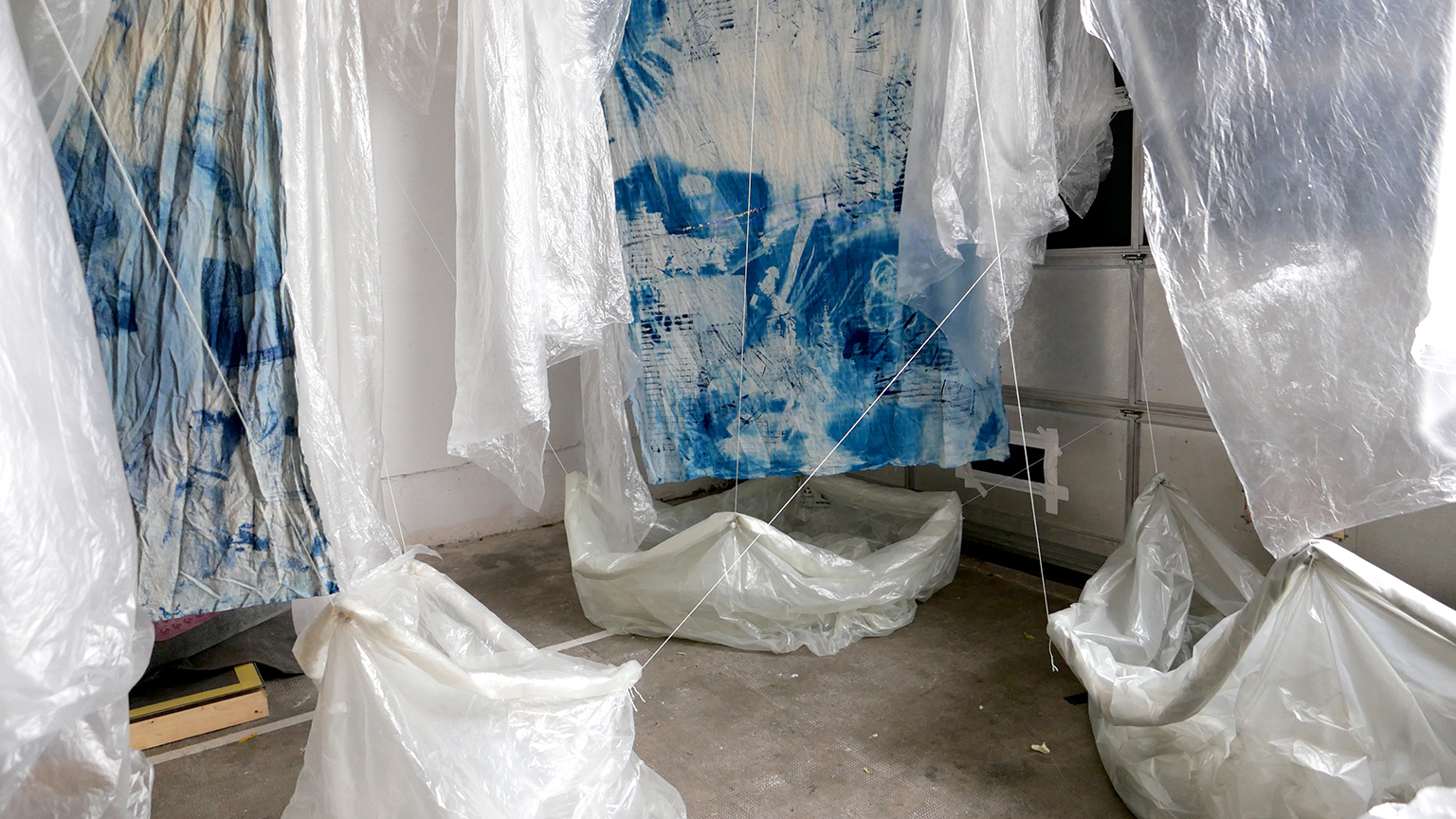 02_„Kontrast atmen“, Installation: Cyanotypie, Wasser in Plastikfolie, Video/Film