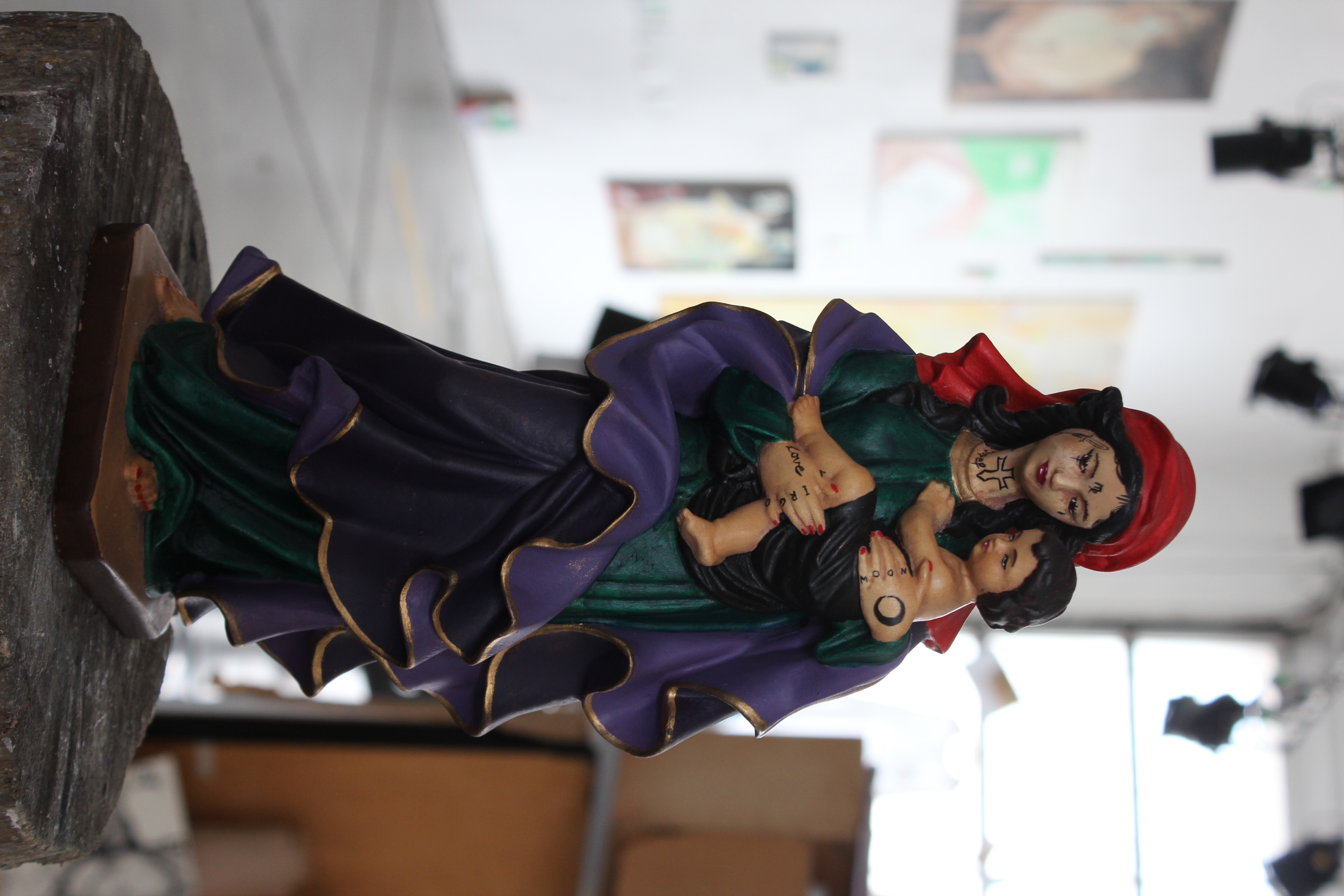 03_Holz Maria_ Holz, Acrylfarbe (Ausschnitt)_10x10x30cm