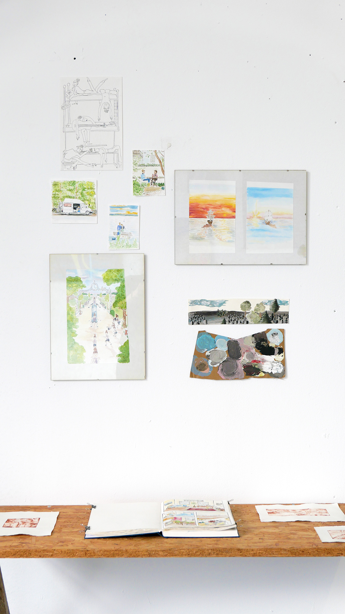 04_„momenti“, Aquarell auf Aquarellpapier, 2 mal 10 x 15 cm, 2 mal 15 x 15 cm