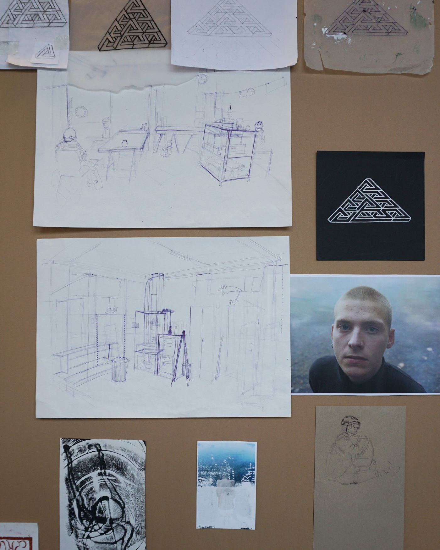 6. beim Arbeiten und Pausieren/ 21,5cm x 29,5cm und 26cm x 32cm / Monotyphie