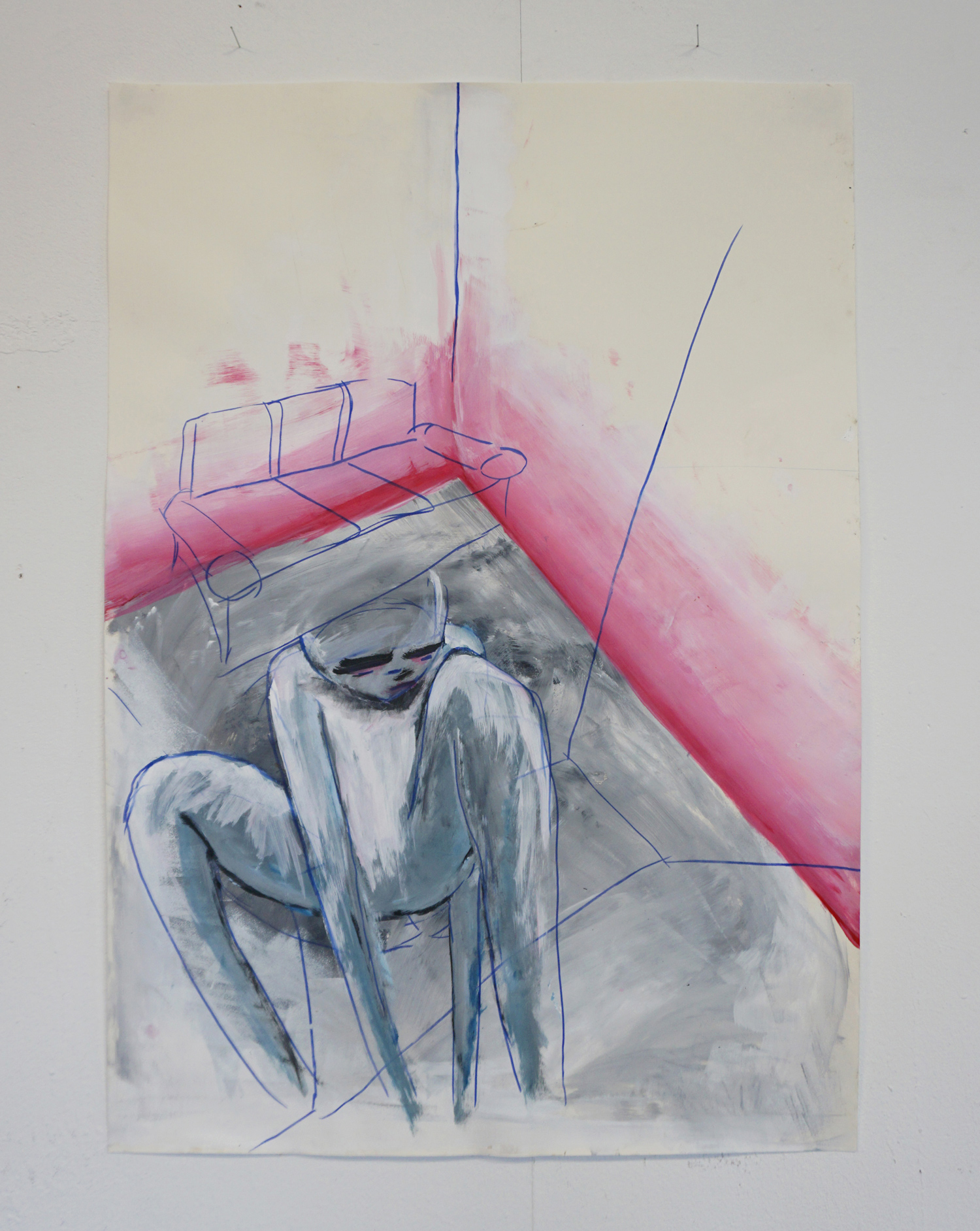 2. Komfortzone / 100cm x 70cm / Acrylfarbe mit Schwamm und Filzstift auf Papier